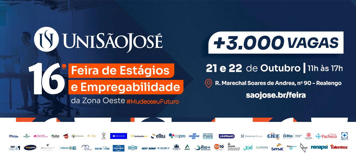 A UniSãoJosé tem o prazer de anunciar a realização da 16ª Feira de Estágios e Empregabilidade da Zona Oeste, um dos eventos mais aguardados do ano na nossa região.
